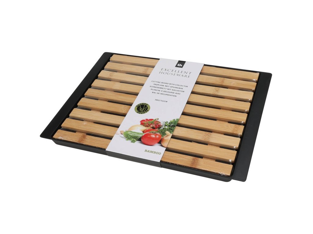 Bambusové krajecí prkénko typu mřížka, s táckem, 38 x 27,2 x 2 cm