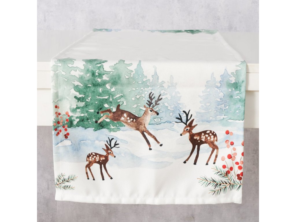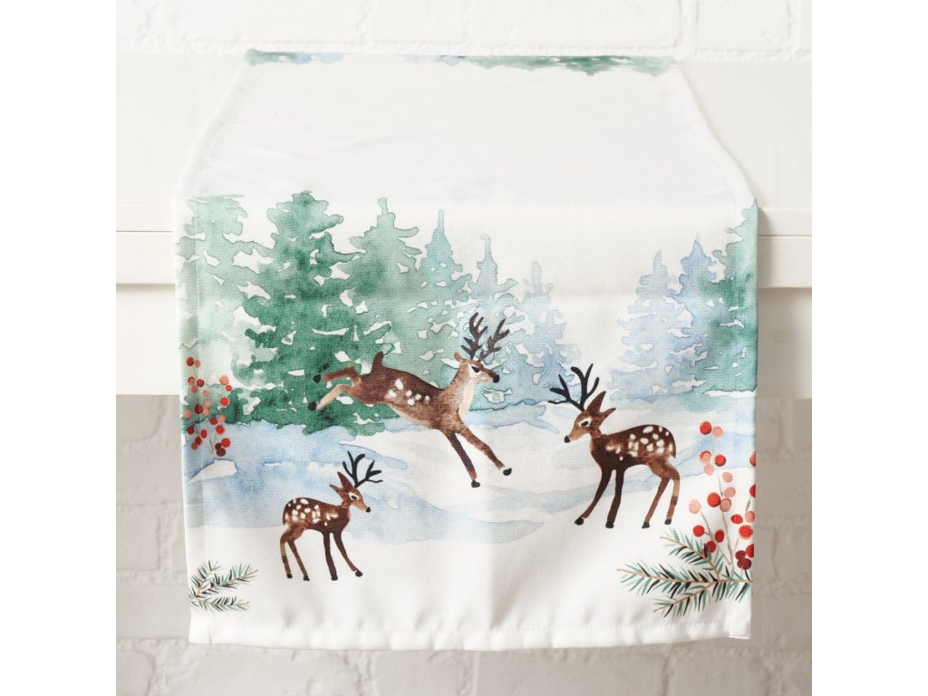 Ubrousek na stůl s motivem sobů ROXY 140 cm - vnes do svého interiéru vánoční atmosféru
