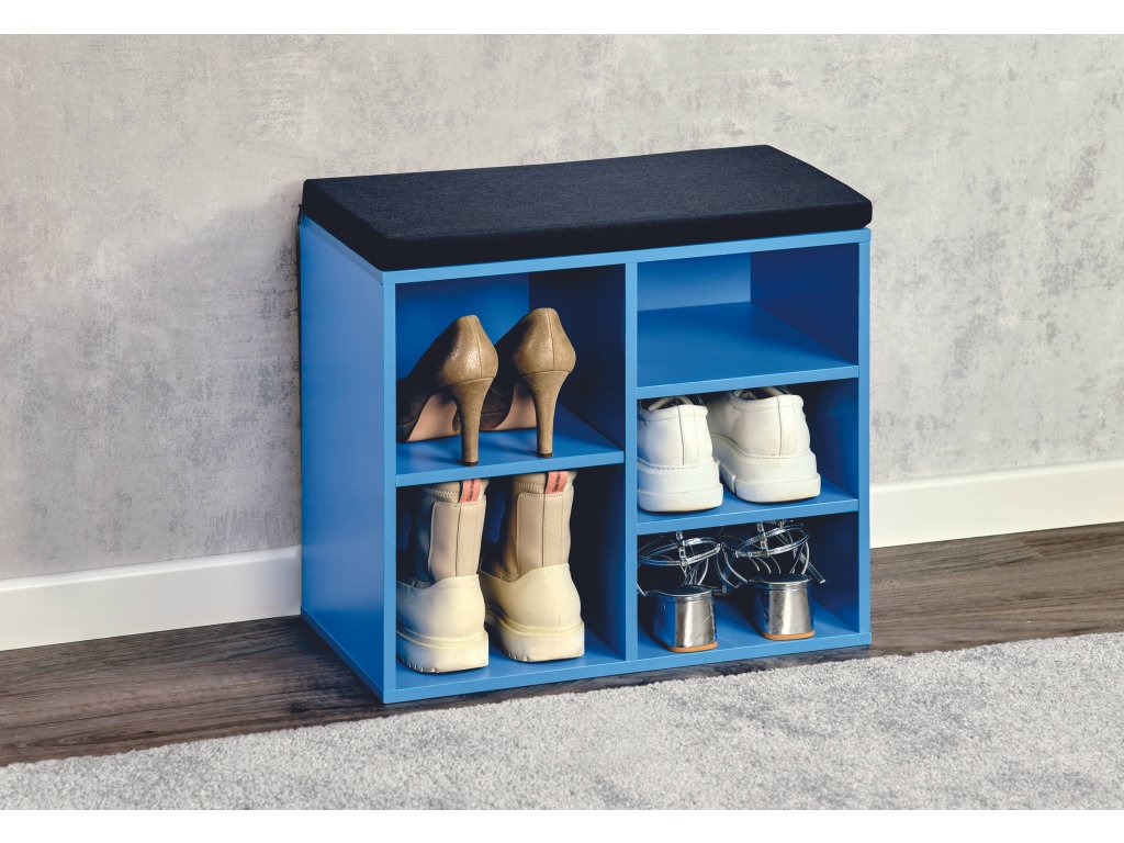 - Uložení a obouvání obuvi: Skříň na boty s poduškou na sezení, která umožňuje pohodlné a funkční uložení bot a pohodlné obouvání.