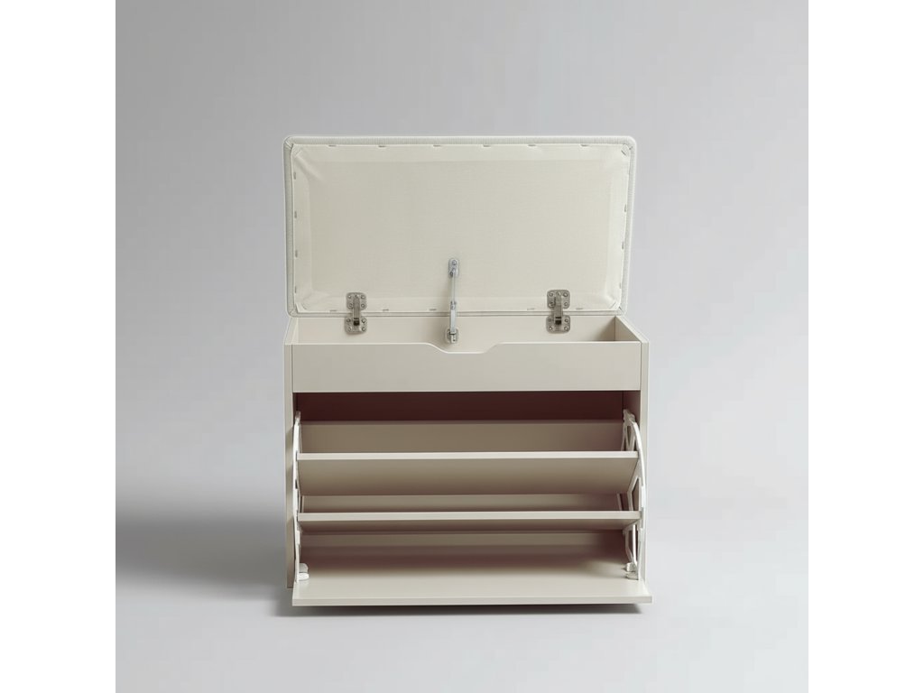 - Pohodlné sedadlo: Horní část botníku plní funkci sedadla, je potažena polyesterovým čalouněním, což zajišťuje pohodlí při obouvání. Výplň z polyuretanové pěny zaručuje správnou měkkost.