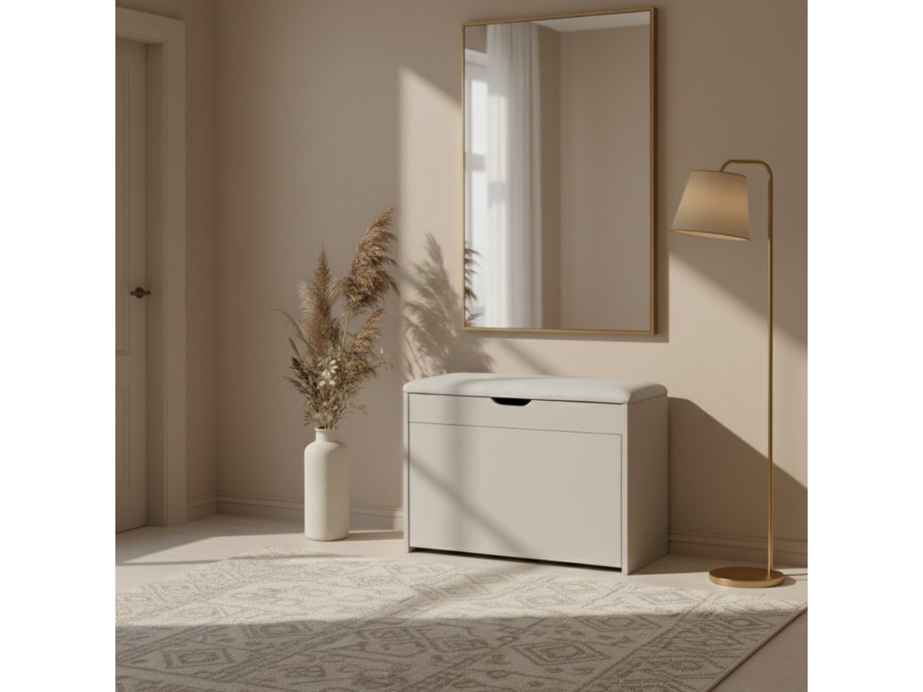 Konec nepořádku v předsíni! Botník s sedadlem VAULT je praktické a moderní řešení, které umožní pohodlně ukládat obuv a každodenní doplňky. Jeho elegantní design a neutrální barevnost se hodí do různých aranžmá interiérů a pečlivě propracovaná konstrukce zajišťuje, že VAULT nejen uspořádá prostor, ale také dodá interiéru harmonii a styl.