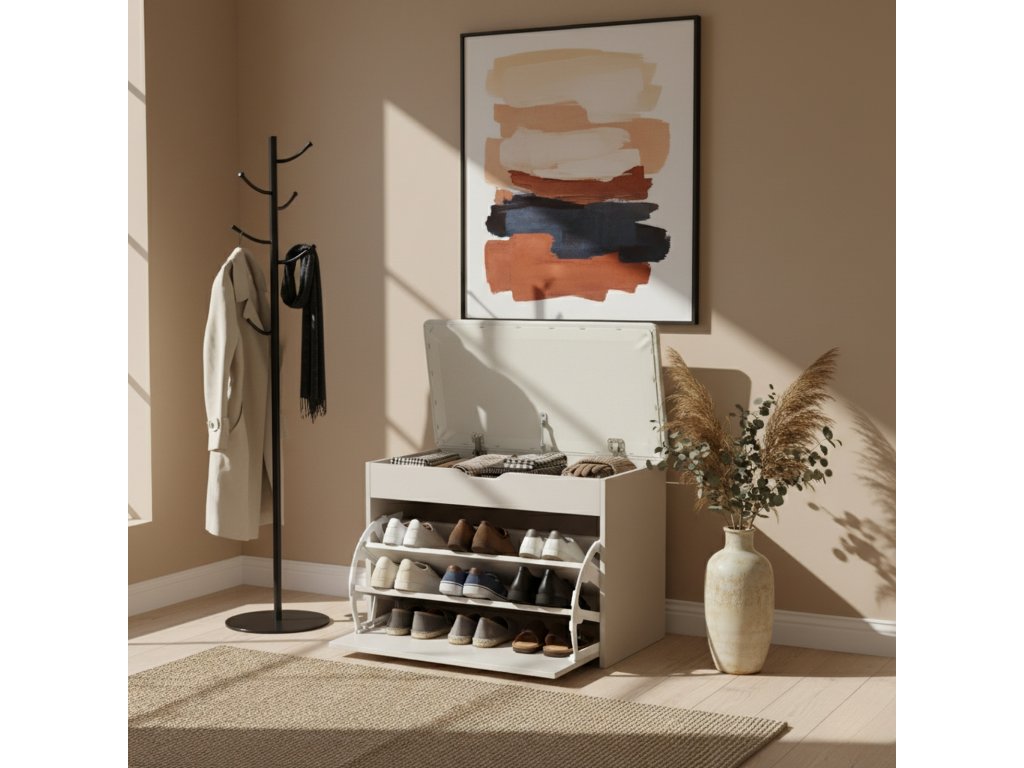 - Snadná údržba čistoty: Botník lze snadno čistit pomocí mírně vlhkého hadříku, což usnadňuje péči o jeho estetiku. To je ideální řešení pro osoby, které si cení pořádku ve svém interiéru.