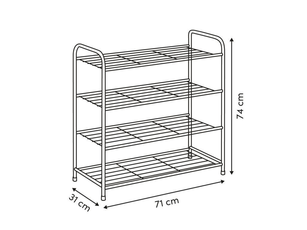 Stojan na boty 4 úrovně METTY s kovovou konstrukcí a ochranou podlahy - Prostorný a odolný stojan na 12 párů bot