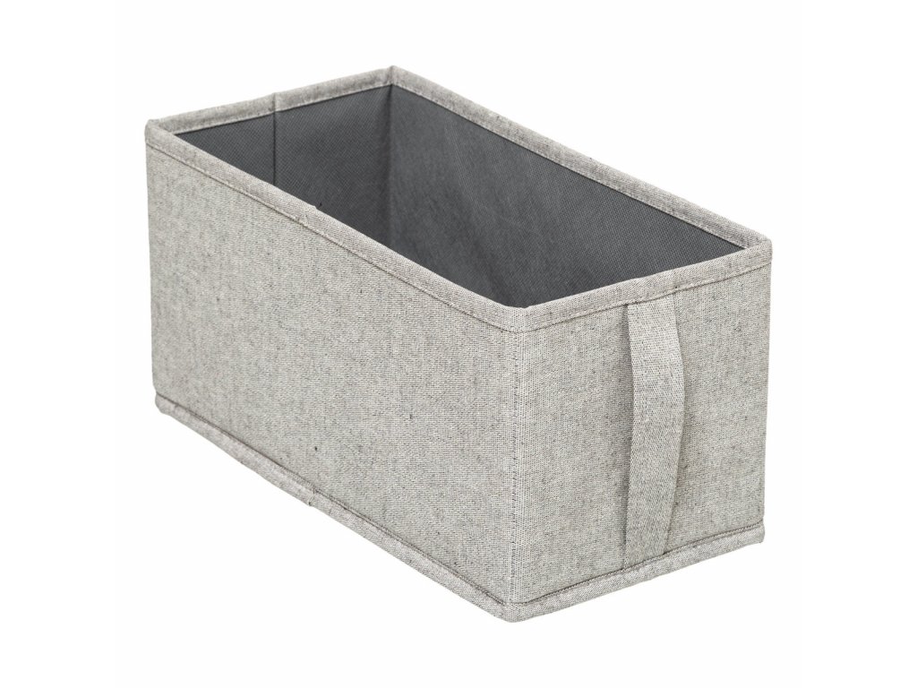 Textilní box je vybaven víkem, které zabrání usazování prachu. Úchyt na přední straně umožňuje snadné vysunutí boxu ze skříně nebo komody. Textilní box se skládací konstrukcí je skvělé řešení s mnoha možnostmi využití.