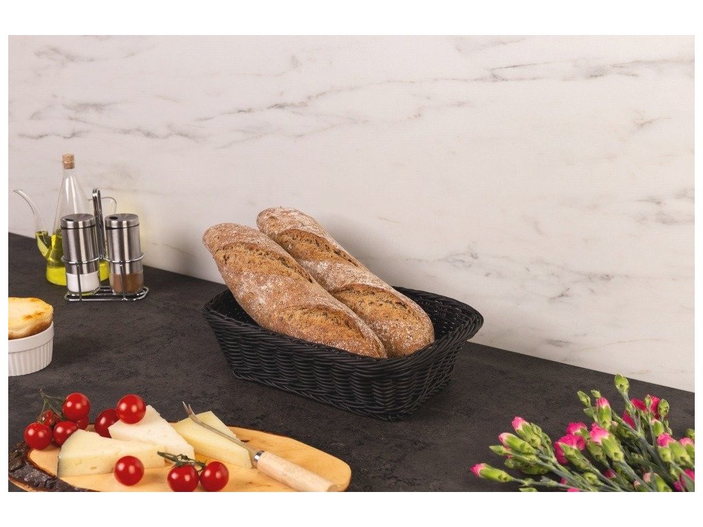 Plastový košík na pečivo od značky Kesper nemá sobě rovného, protože okouzlí jak svou vkusnou prezentací, tak i praktickými hodnotami. Tento černý koš na chleba fantasticky ozdobí každý stůl a zdůrazní slavnostní charakter jídelního servisu a přitom bude vždy vypadat uklizeně a čistě. Plast, ze kterého je košík na chleba vyroben, je velice stálý a hygienický. Takovýto elegantní kuchyňský koš bez problému očistíte, dokonce i v zákoutích typických pro pletené doplňky, a díky tomu se postaráte o to, aby jídlo bylo vždy servírováno hygienicky a pro zdraví spolustolovníků bezpečně.