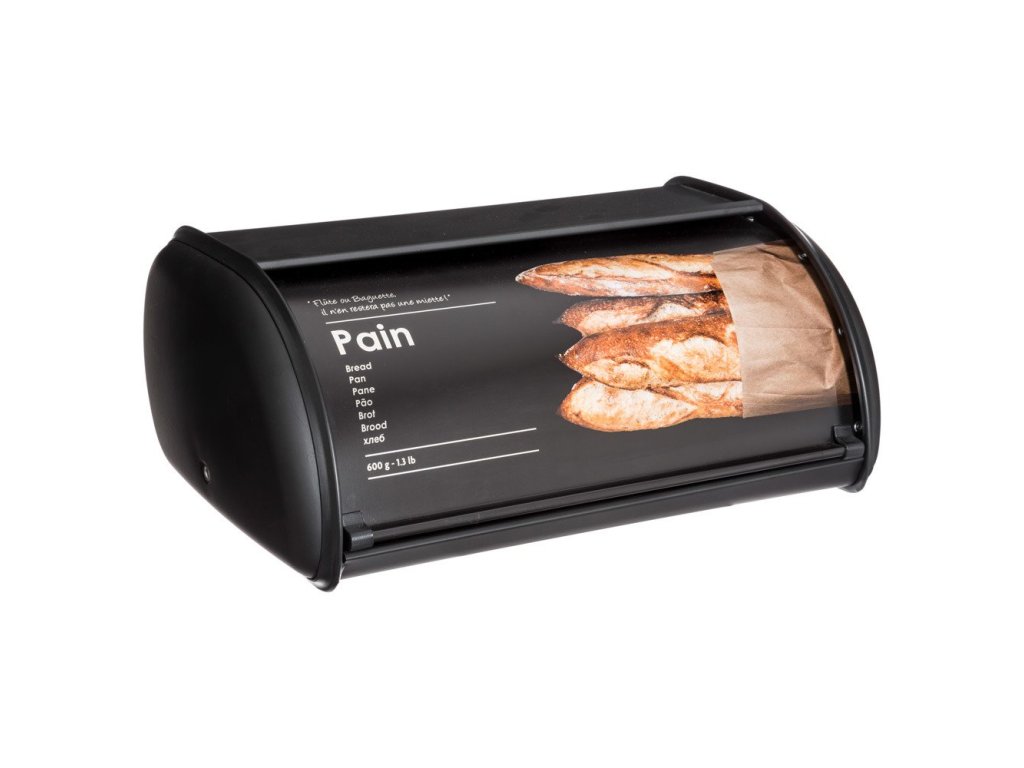 Moderní kovový chlebník umožní udržet pečivo dlouho čerstvé a křupavé. Tato praktická věc by neměla v žádné kuchyni chybět. Chrání pečivo před vlhkem a zdraví škodlivou plísní. Černá barva je velmi elegantní a barevný potisk zajímavě ozdobí kuchyň.