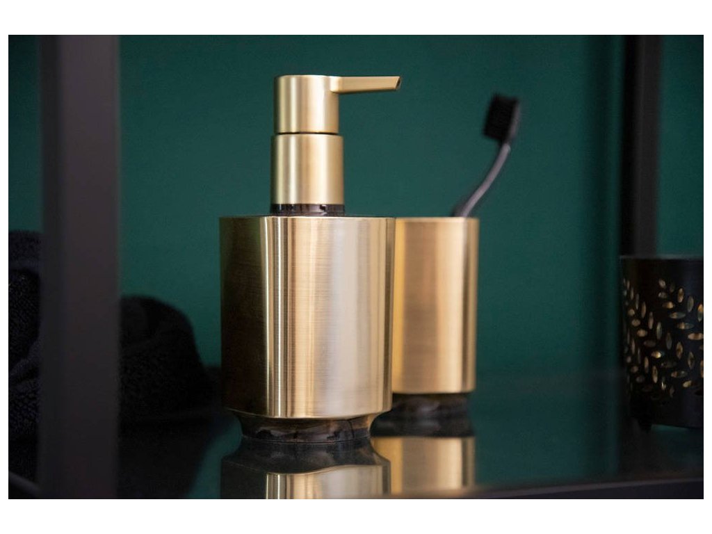 Dispenser na tekuté mýdlo AURON, zlatý, WENKO. Jak v klasické, tak v moderní koupelně nesmí chybět stylové doplňky. Mezi mnoha skupinami gadgetů, příslušenství a produktů často vybíráme ty, které nejen splňují naše estetické požadavky, ale zároveň jsou praktické a pevné. Jsou to především nádoby na zubní kartáčky, mýdlenky, dispensery na mýdlo a také různé kosmetické organizéry, ve kterých uschováme všechny potřebné hygienické prostředky, kosmetiku a kosmetické příslušenství během péče.