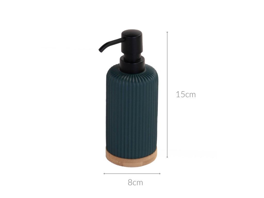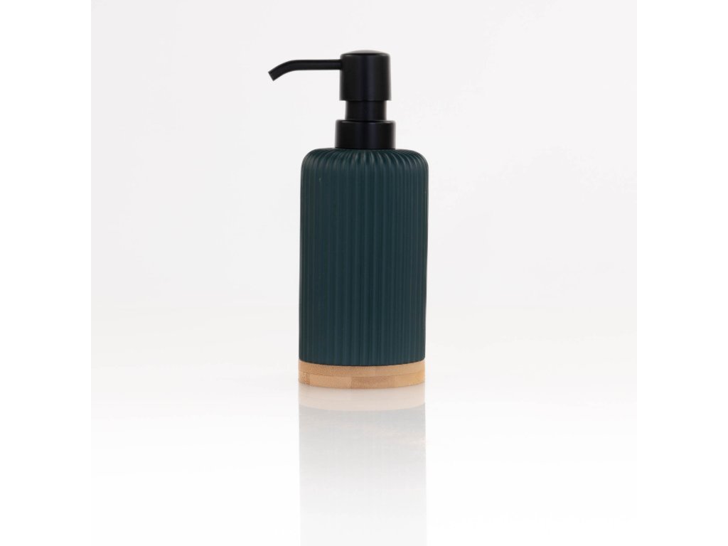Dávkovač mýdla MODERN, mořská zelená barva značky 5Five Simply Smart je praktickým, funkčním a nezbytným koupelnovým doplňkem. Takové malé koupelnové prvky pomůžou vyzdobit naši koupelnu. Zelený dávkovač mýdla s černou pumpičkou francouzské značky 5Five Simply Smart se bude hodit do koupelen zařízených v moderním stylu.