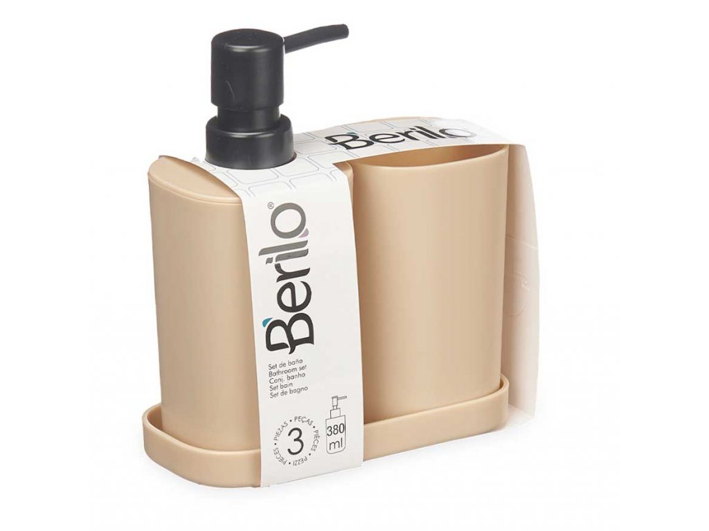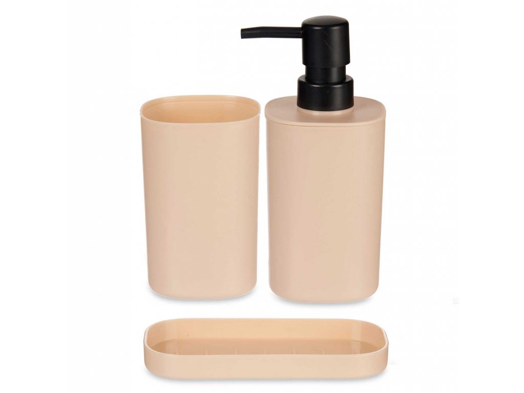 Dávkovač mýdla s kelímek na zubní kartáčky s táckem, plastový, 3 prvky, béžová