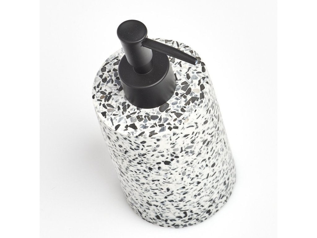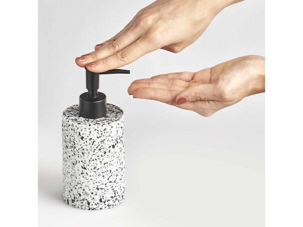 Dávkovač mýdla s čerpadlem TERRAZZO, polypryskyřice, ZELLER. Při zdobení bytu oceňujeme jednoduché přísady, které usnadňují život, jsou ekologické a praktické. Správně vybrané příslušenství může také dát chuť místnosti vytvořením harmonického celku v něm. S ohledem na to ZELLER připravil užitečné řešení speciálně pro lidi, kteří oceňují tyto vlastnosti. Předložený dávkovač mýdla kombinuje jednoduchý styl a praktická řešení.