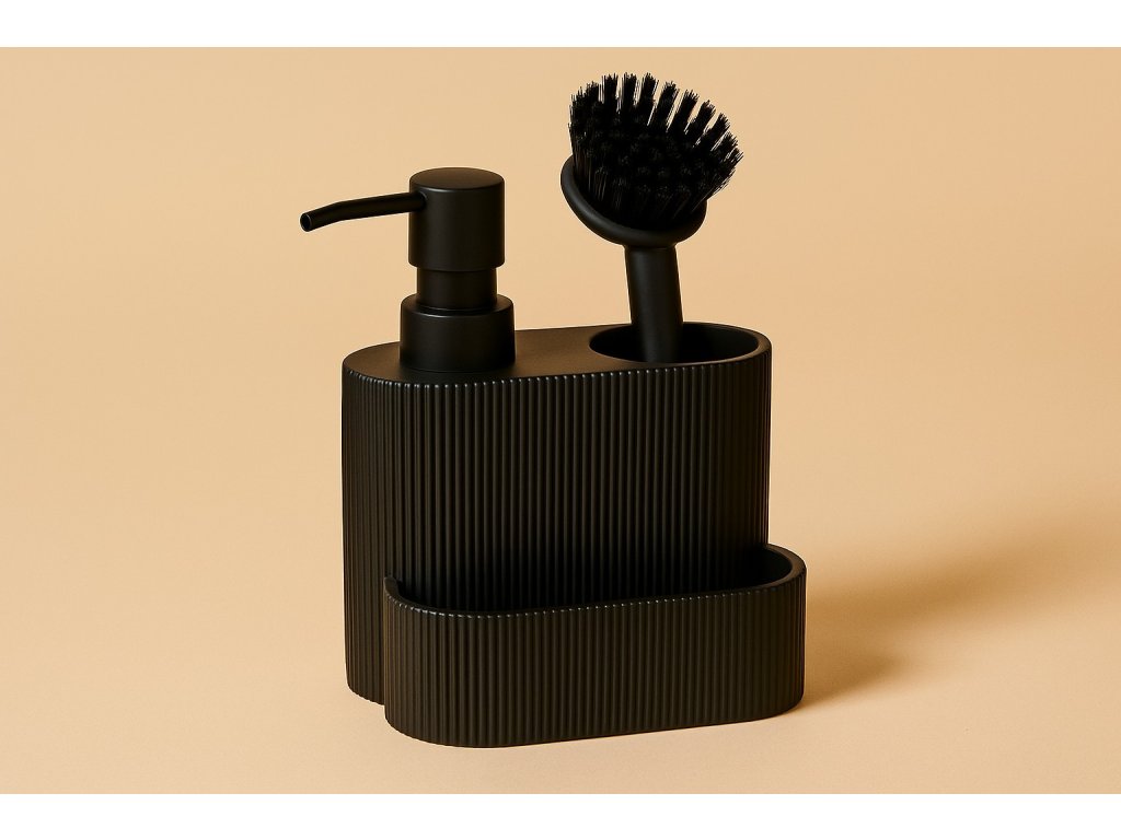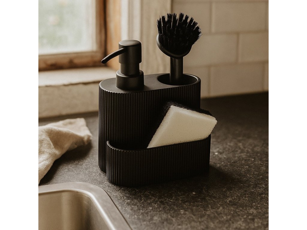 Dispenser na mycí prostředek s místem na štětec a houbu KIMU - praktické řešení spojující funkčnost s estetikou ve vaší kuchyni
