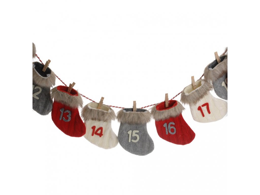 Adventní kalendář v podobě věnce, ponožky téma, 28 x 36 cm je zábava nejen pro nejmenší, ale i pro dospělé. V posledních letech se ty, ve kterých nenajdeme tradiční sladkosti, staly módní, ale náš dárce je naplňuje individuálními a malými dary. Takový kalendář bude fantastickým darem pro ženu, syna, matku nebo přítele. V ponožkách můžete do kina umístit sladkosti, malé doplňky, kosmetiku nebo vstupenky. Jste omezeni pouze vlastní představivostí!