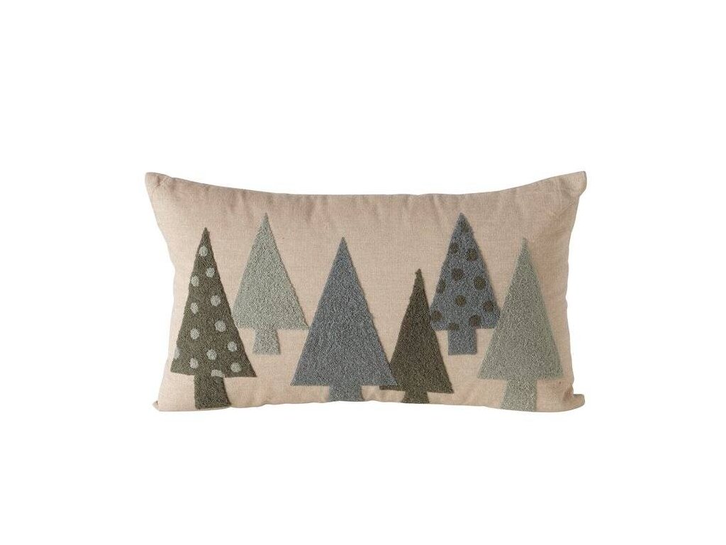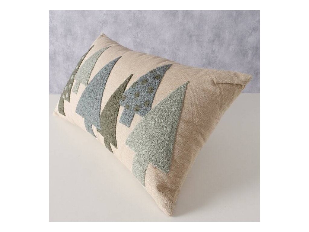 - Ozdobný motiv: Vícebarevný vzor s vánočními stromečky v odstínech krémové bílé a světlé zelené dodává polštáři vánoční charakter, ideální na zimní měsíce.