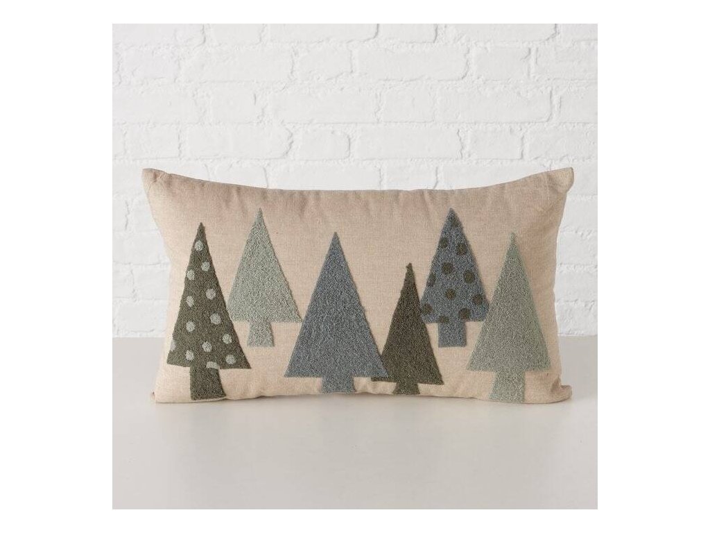 Dekorační polštář s vánočními stromečky z látky boucle MALI, 30 x 50 cm