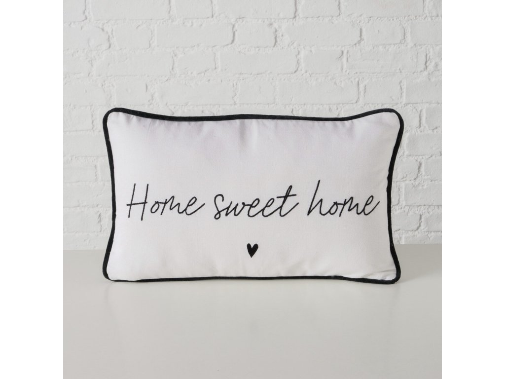 - Stylový design: Bílý povlak s nápisem "Home sweet home" a černým lemem dodává eleganci a charakter. Roztomilý symbol srdíčka dělá z polštáře nejen funkční prvek, ale také krásnou dekoraci.