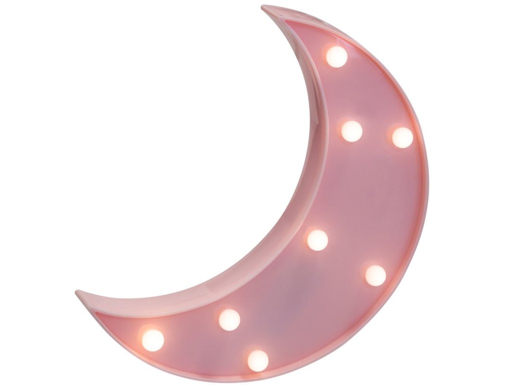 LED lampička je po mnoho sezón oblíbená a užitečná dekorace, která se dokonale hodí do dětského pokoje. Růžový měsíc s 8 žárovkami vytvoří v dětském království teplou a příjemnou atmosféru. Svítící lampička se stane doplňujícím zdrojem světla, které mrňouskovi usnadní usínání, zajistí mu komfort spánku a pocit bezpečí. LED měsíc je skvělý nápad na narozeninový dárek pro dítě. Noční světýlko v podobě kouzelného měsíce je navrženo a vyrobeno známou francouzskou firmou Atmosphera Créateur d'intérieur, která se specializuje na výrobu dekorací a nábytku do domácnosti a kanceláře. Lampička je napájena bateriemi 2xAA, které nejsou součástí balení.