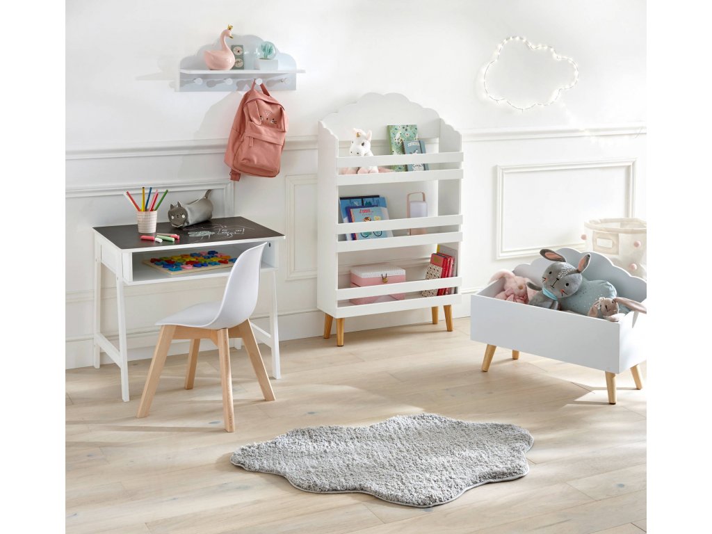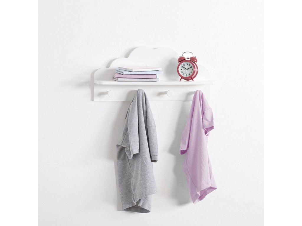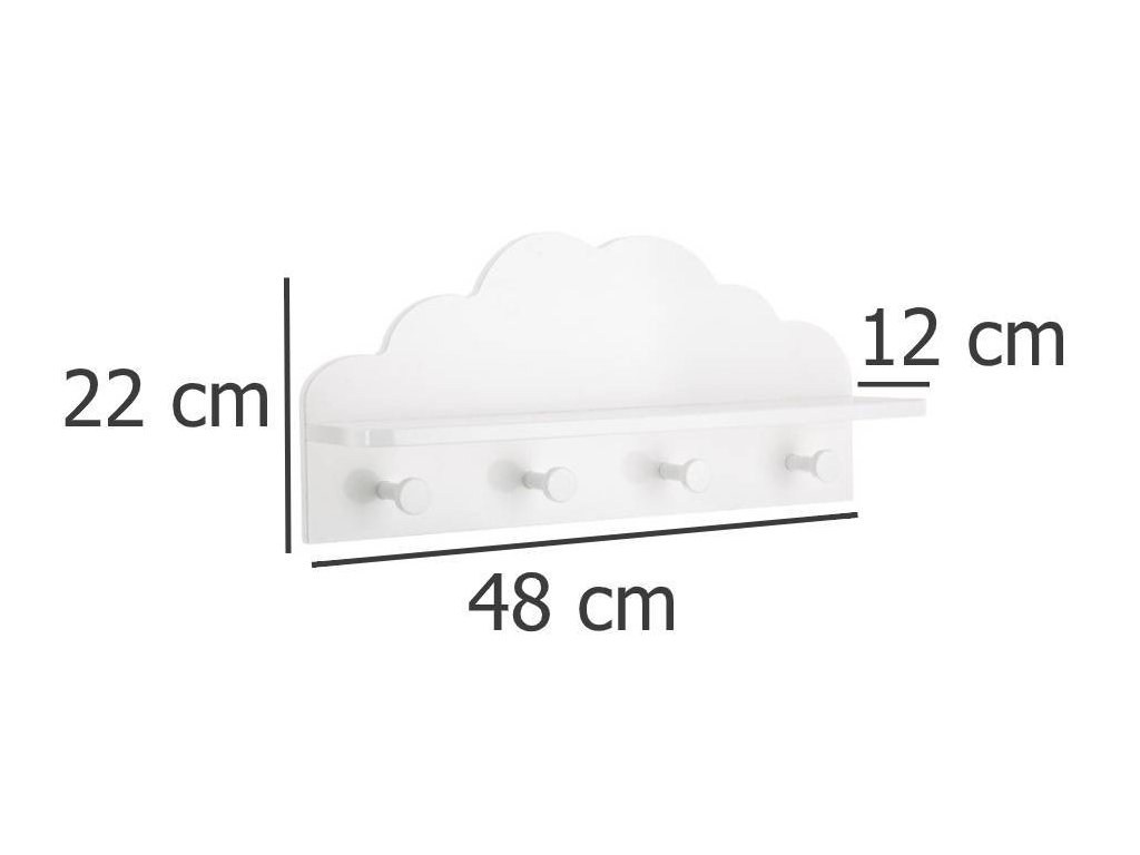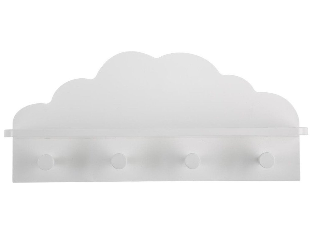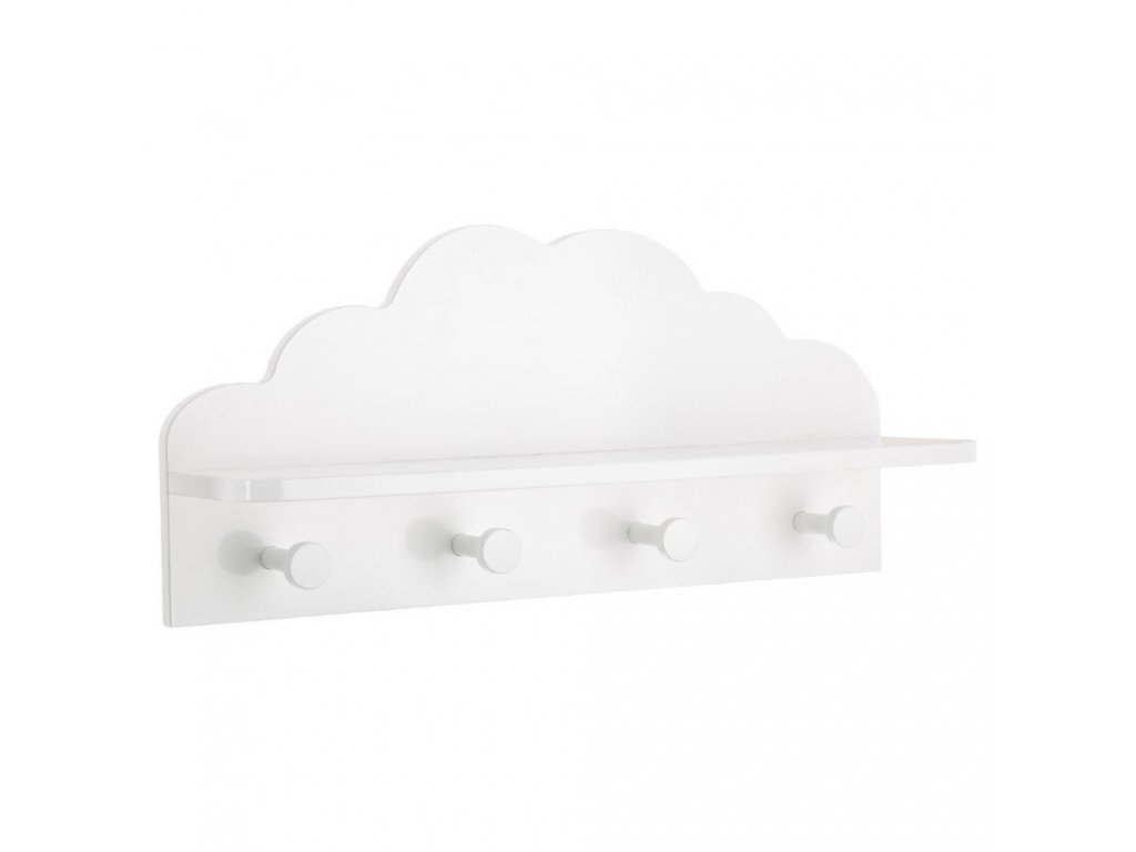 Bílá dětská polička CLOUD, 4 háčky, 48 x 22 x 12 cm