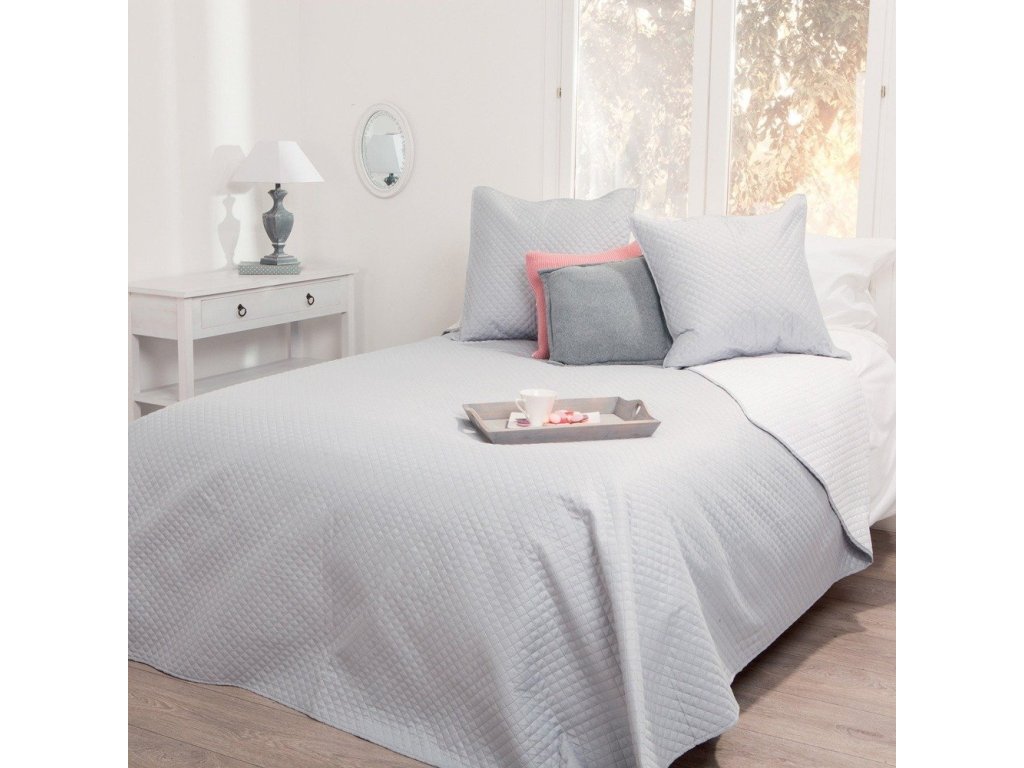 Svrchní strana polyesterového plédu na postel je v šedé barvě, která patří k hitům letošní sezóny. Z druhé strany je pléd bílý. Přehoz je měkký, příjemný na dotyk a snadno se udržuje. Společně s tímto plédem, obdržíte dva potahy na polštář.