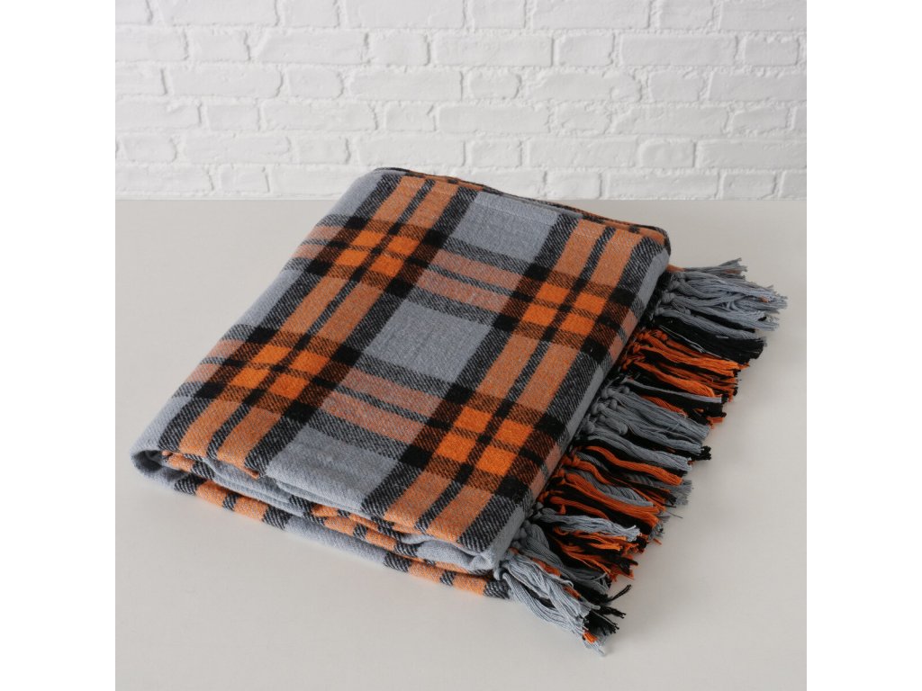 - Stylový design: Vícebarevný vzor v kostce v šedo-oranžových odstínech dodává charakteru každému interiéru. Deka se skvěle hodí do různorodých aranžmá, stávajíc se jejich atraktivním akcentem.