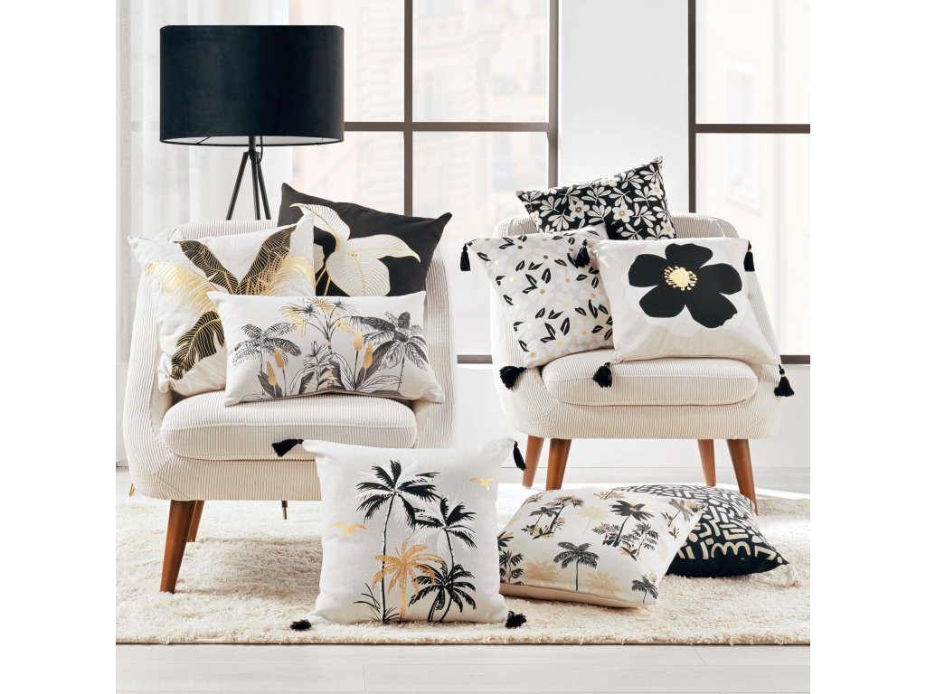- Elegantní dokončení: Zlaté ozdoby na černém materiálu dodávají polštáři luxusní vzhled, který skvěle zapadá do moderních interiérů s elegantním stylem.