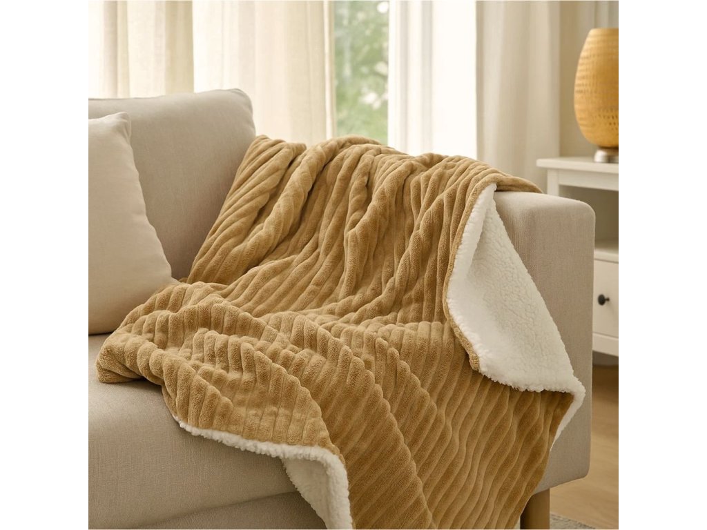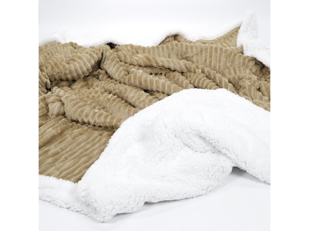 - Oboustranná konstrukce: Deka má dvě různé strany – jedna z měkkého materiálu v béžové barvě, a druhá z útulného beránka. Díky tomu si ji můžete přizpůsobit své náladě a potřebám, a užívat si rozmanitosti.