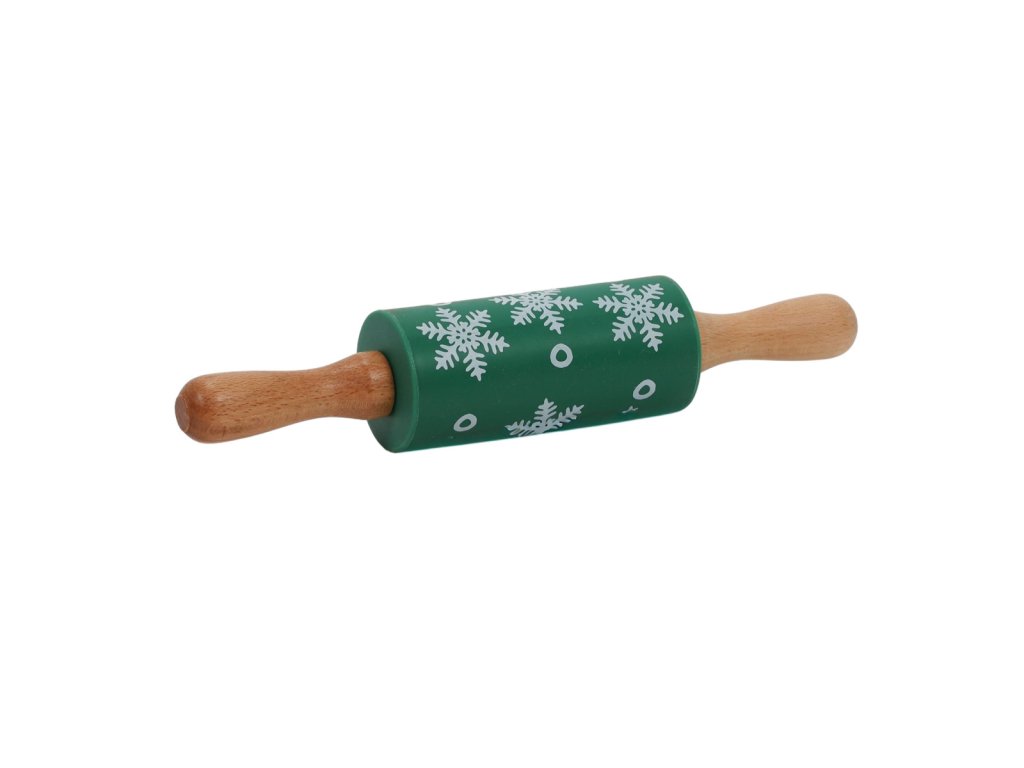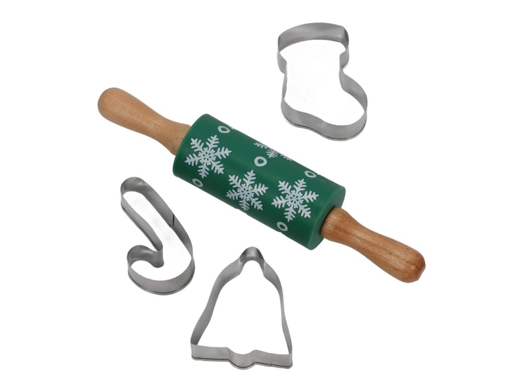 Sada na pečení pro děti TIVOLA, mini váleček se vzorem sněhových vloček + 3 formičky, zelená