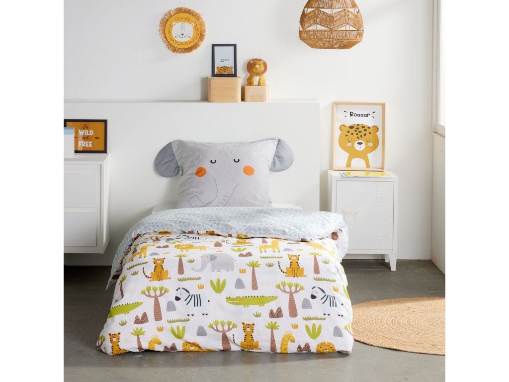 - Přátelské vzory: Vzory s usměvavými zvířátky, jako je kočička, dinosaurus nebo sova, dělají povlečení nejen funkční, ale také vizuálně atraktivní. To je skvělý způsob, jak vytvořit útulnou atmosféru v dětském pokoji.