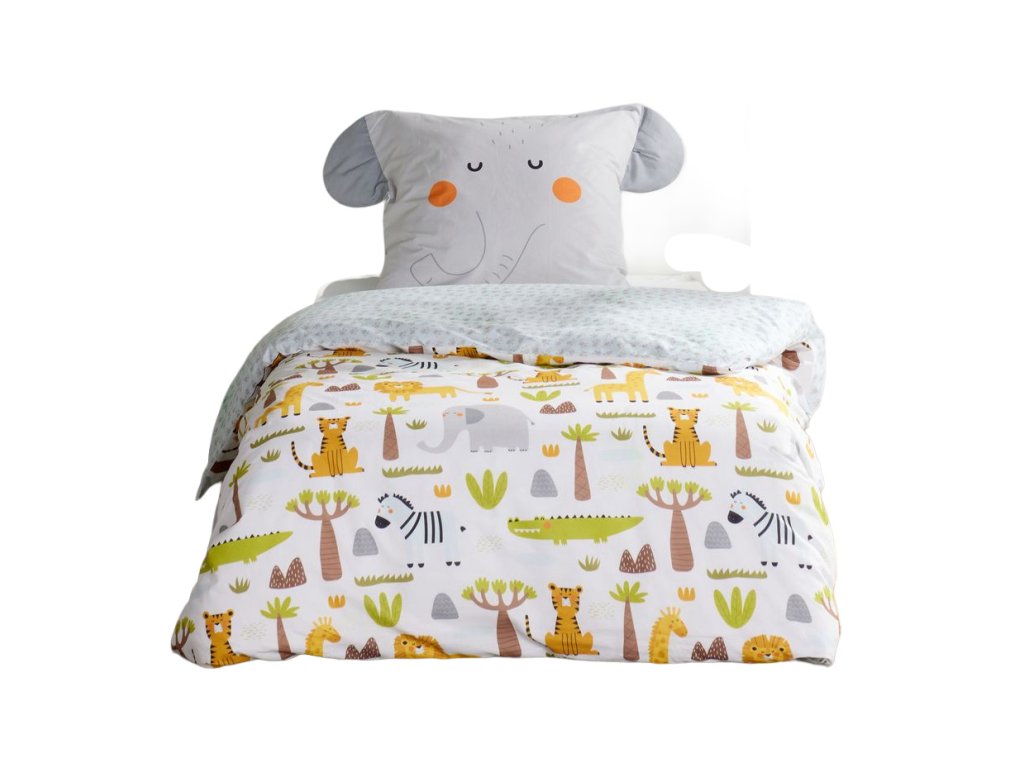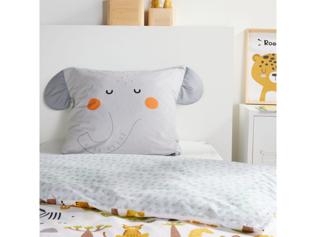 Dětské povlečení 140x200 cm LAZY MORNING, bavlněné, povlak s ušima, slon