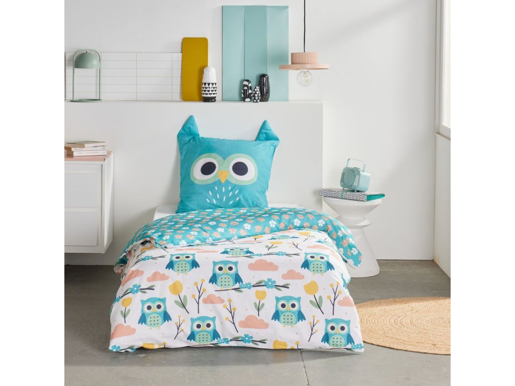 Dětské povlečení 140x200 cm LAZY MORNING, bavlněné, povlak s ušima, sova