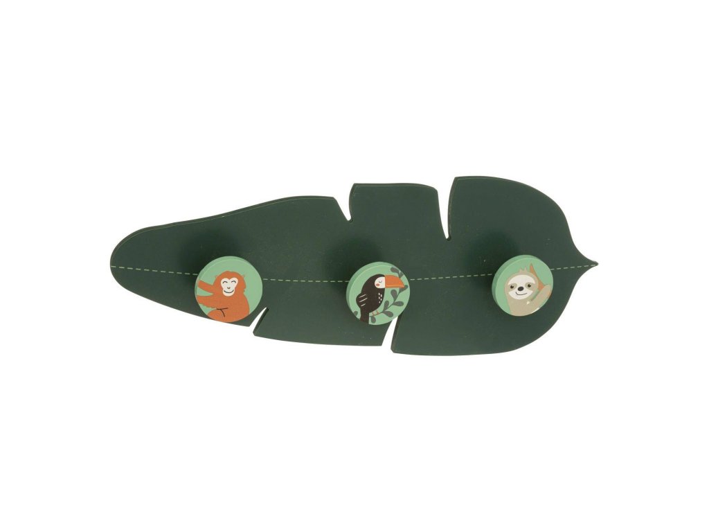 Věšák na dětské oblečení Jungle, 3 barevné háčky, tvar listu, 40 cm