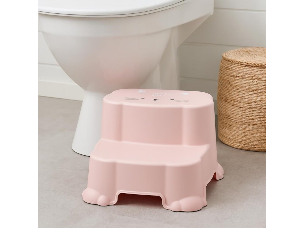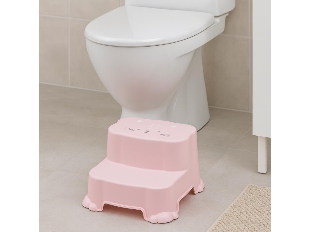 - Barevný design: Stupínek je k dispozici ve třech atraktivních barvách: modré, růžové a zelené, což usnadňuje jeho sladění s interiérem každé koupelny. Navíc zábavné motivy zvířat na horní části stupínku přitahují pozornost dětí.