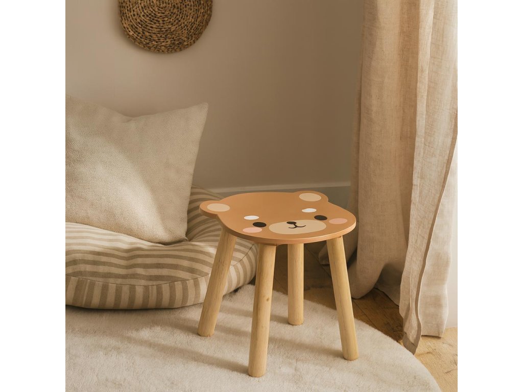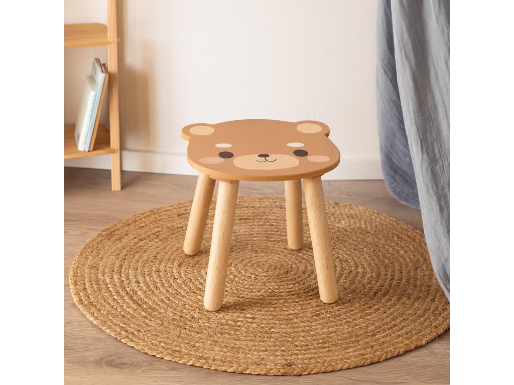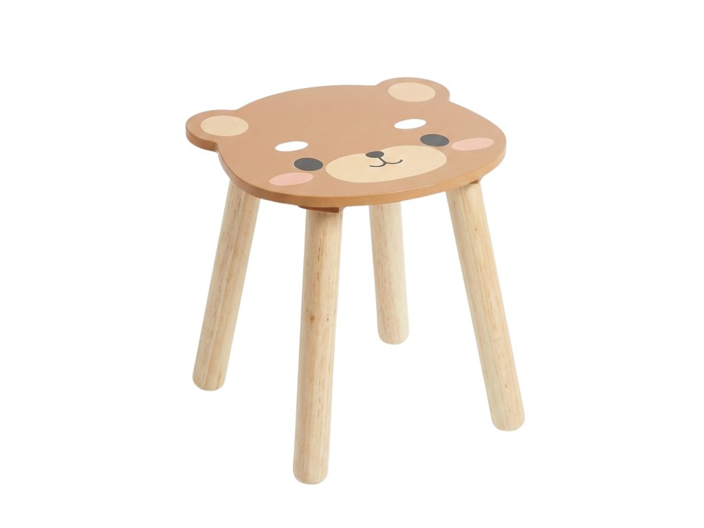 Dřevěná dětská stolička SAFARI s motivem medvěda, 28 cm