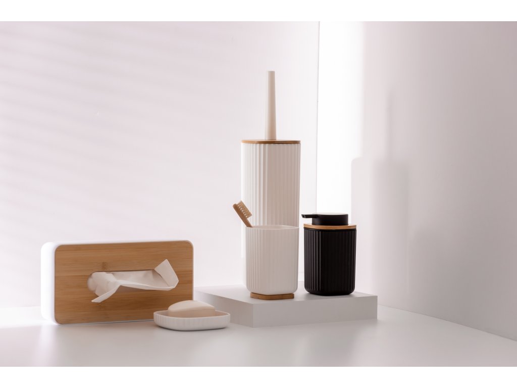 - Bambusové víko. Bambusové víko je nepochybnou výhodou tohoto zásobníku. Díky širokému otvoru snadno vytáhnete ubrousek. Odnímatelné víko také umožní rychlé doplnění zásobníku.