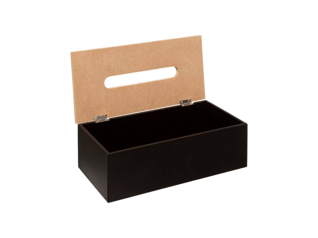 - Estetické provedení: Box na kapesníky je vyroben z MDF, který imituje dřevo, což dodává boxu elegantní vzhled. Víko na pantech usnadňuje výměnu kapesníků a chrání je před znečištěním.