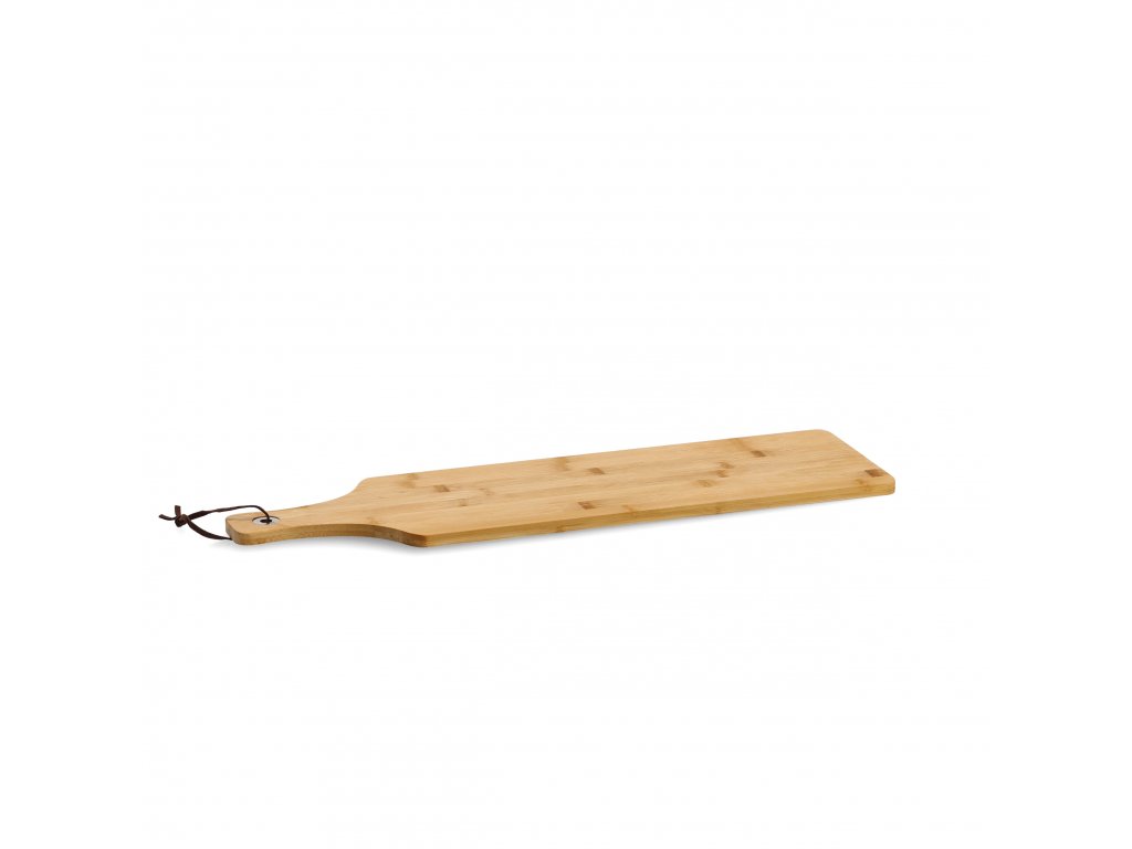 Obdélníková kuchyňská deska na krájení a servírování. Vyrobena z odolného bambusového dřeva. Zaručuje dlouhou životnost při zachování svého estetického vzhledu. To je zásluhou výjimečně odolného dřeva, které je odolné proti poškrábání, praskání a působení vody. Nepohlcuje pachy a neabsorbuje vodu. Díky tomu rychle schne a snadno se udržuje v čistotě. Vybavena úchytkou na zavěšení a rukojetí pro snadné přenášení.