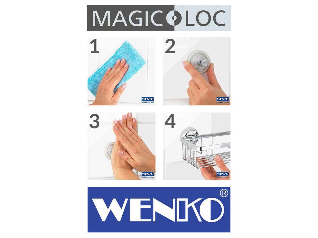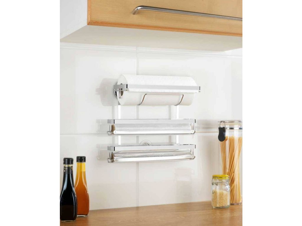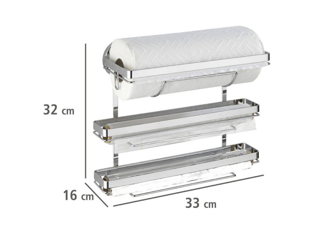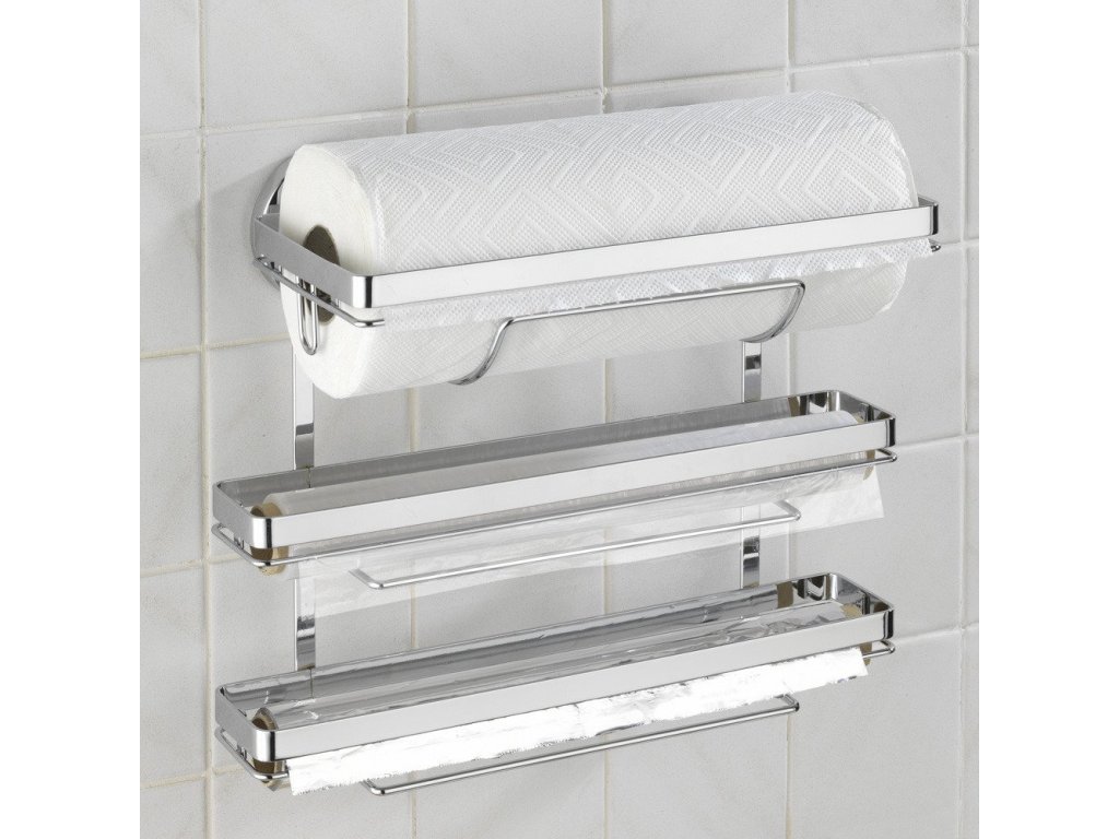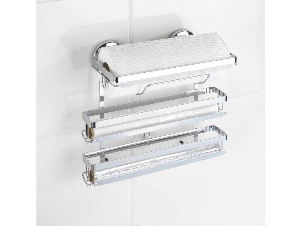 3-podlažní kuchyňský držák s upevňovacím systémem Magic-Loc. Pojme papírovou utěrku a plastovou a hliníkovou potravinovou fólii. Účinně je ochrání před zmoknutím a usnadní rozvíjení. Navíc zajistí, že potřebné věci budou vždy po ruce. Jednoduchá montáž, díky vytvářejícímu se podtlaku, umožňuje přísavku upevnit na všech neprodyšných površích. To zajišťuje výjimečně silné uchycení bez použití nářadí a vrtání.