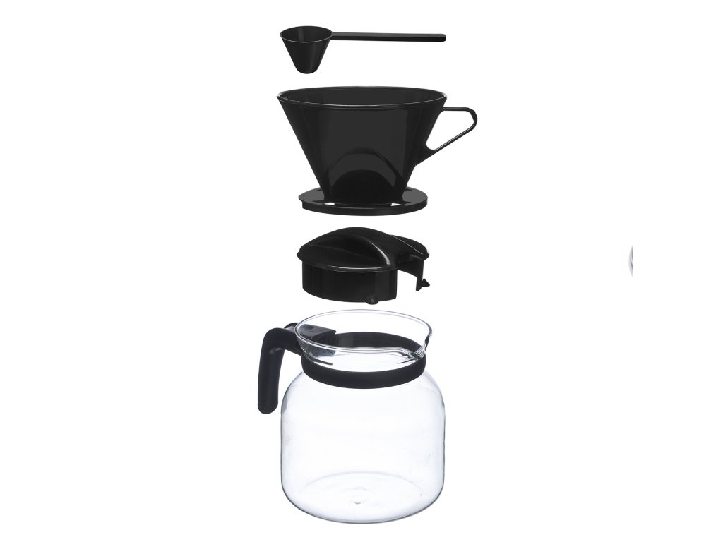 - Jednoduchá příprava kávy: Díky přelivovému filtru a odměrce si můžete snadno připravit aromatickou kávu bez kávovaru.