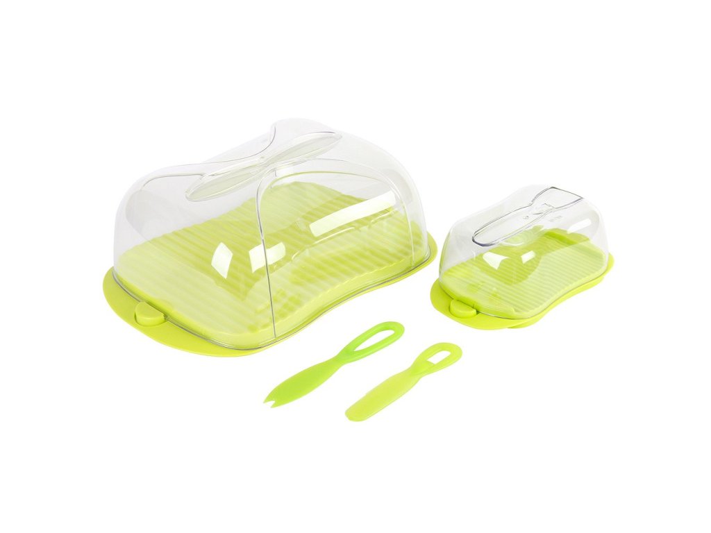 Každý, kdo organizuje setkání a události, ví, jak důležité je správně podávat jídlo. Díky této sadě budou sýry a máslo podávány estetickým a praktickým způsobem, což jistě potěší domácnost a všechny hosty. Už se nebudete muset divit, jak podávat sýr - tato sada bude pro to ideální. Víčka poskytují schopnost chránit potraviny před vnějšími vlivy a nůž jistě bude pracovat na šíření másla.