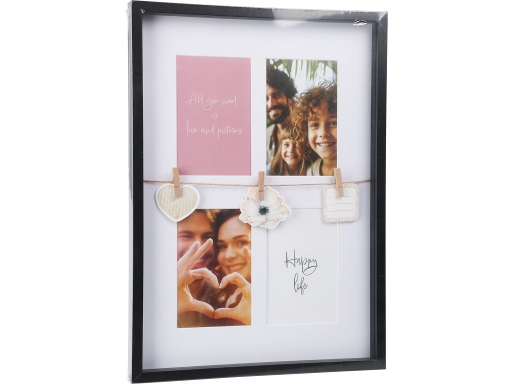 - Praktické příslušenství: Sada obsahuje kovový háček na zavěšení a 4 dřevěné klipsy, což usnadňuje výměnu fotografií a personalizaci dekorace.