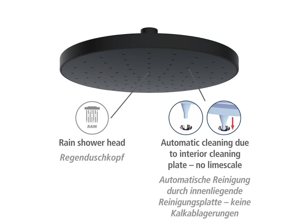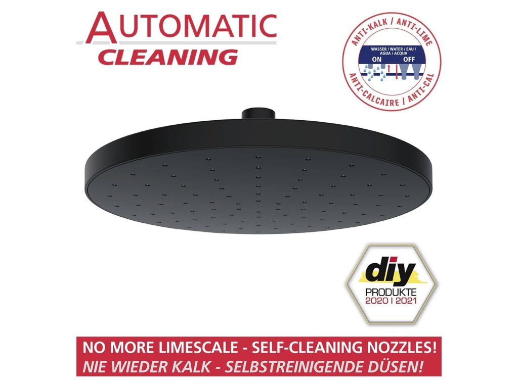Sprchová hlavice s automatickým čištěním, kulatá, černá, o 22,5 cm, wenko