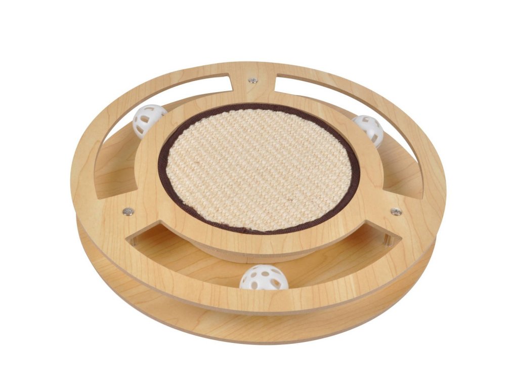 Interaktivní hračka je vyrobena z odolného dřeva. Díky tomu máte jistotu, že ji kočka rychle nezničí. Navíc produkt vyžaduje od zvířete soustředění, cvičí jeho intelekt a je pro něj bezpečný. Kulaté škrabadlo umístěné uprostřed hračky umožňuje uvolnění napětí.