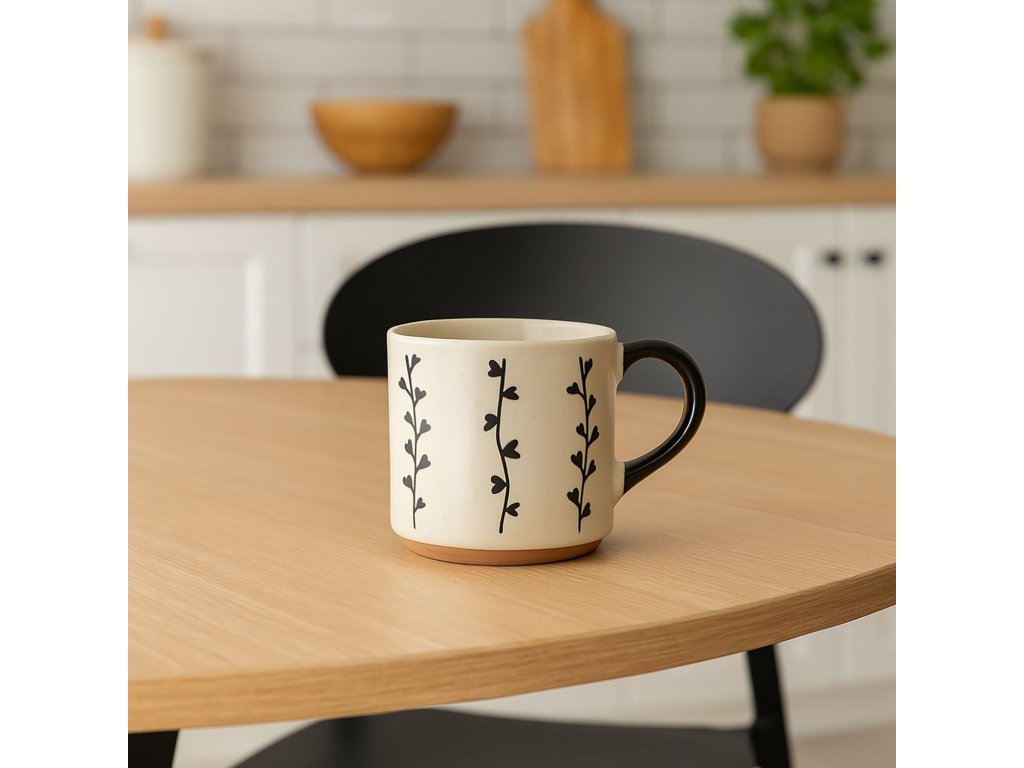 - Stylový design: Keramický hrnek s uchem o objemu 350 ml je ideální kombinací funkčnosti a estetiky. Jeho unikátní vzhled zajišťuje, že se skvěle hodí do každé kuchyně nebo jídelny.