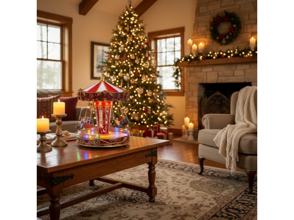 Vánoční LED kolotoč s hudbou a pohyblivými figurkami - přiveďte kouzlo Vánoc do svého domova díky barevným světlům a zvukům
