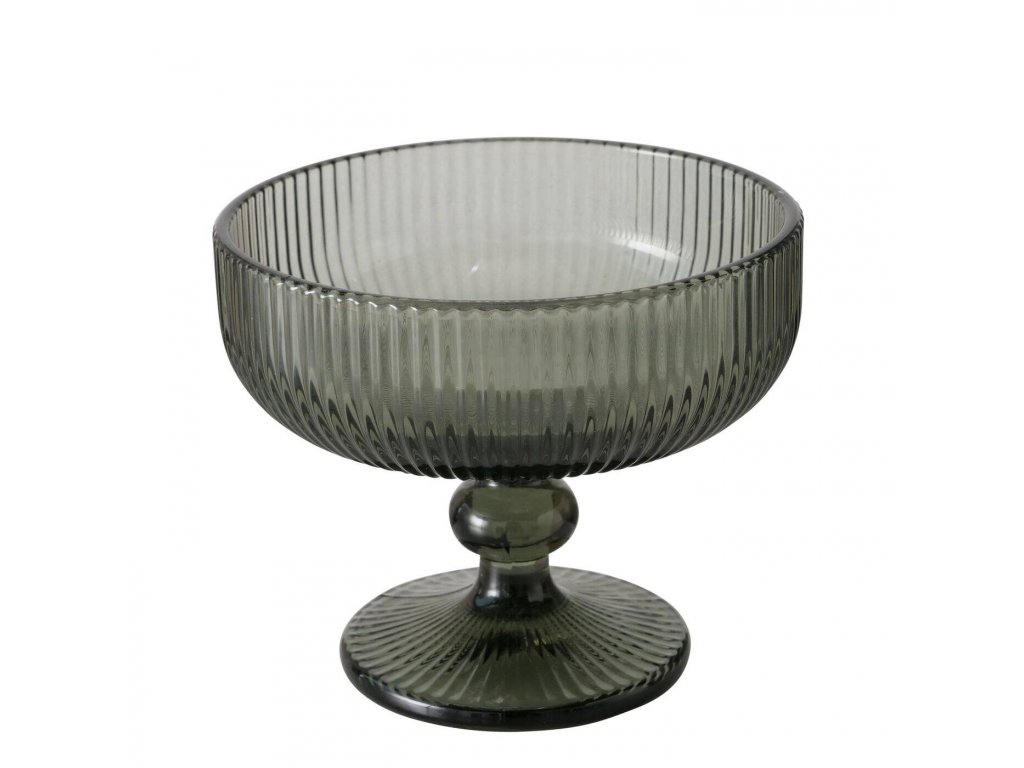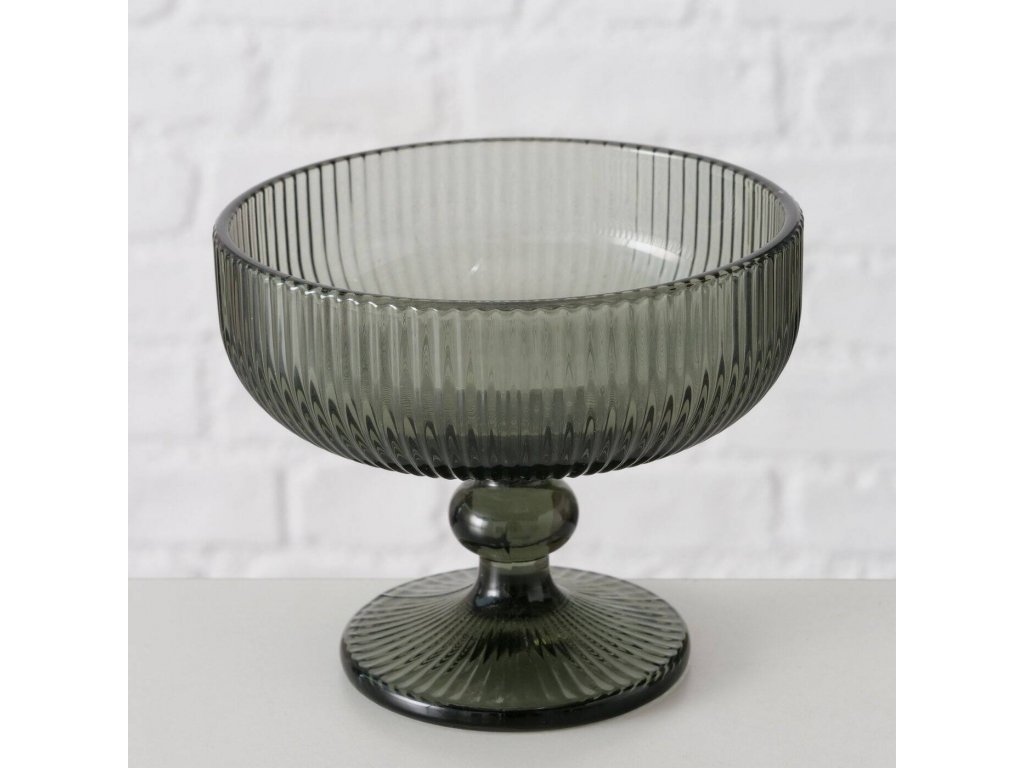 Drážkovaný zmrzlinový pohár na dezerty a zmrzlinu, zelené sklo, Ø 12 cm