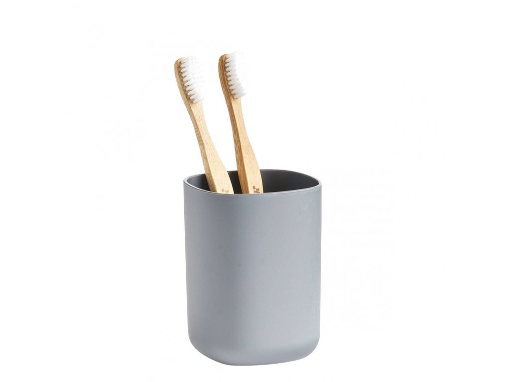- Antracitový kelímek na kartáčky: Obdélníkový kelímek je ideální k uložení kartáčků a kosmetických doplňků. Můžete ho také využít jako kelímek na vodu k výplachu úst.