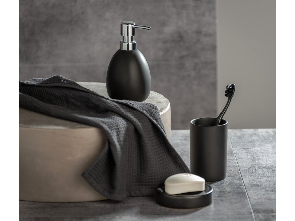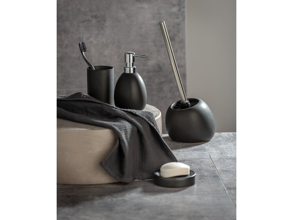 Hrnček se vyznačuje provedením z vysoce kvalitní keramiky, což zajišťuje, že je plně odolný vůči vodě a vlhkosti. Černá barva v kombinaci s kulatým tvarem zajišťuje, že produkt se hodí téměř do každé aranžace – od industriální po vintage styl. Rozměry hrnku na zubní kartáčky jsou 7 x 11 centimetrů.