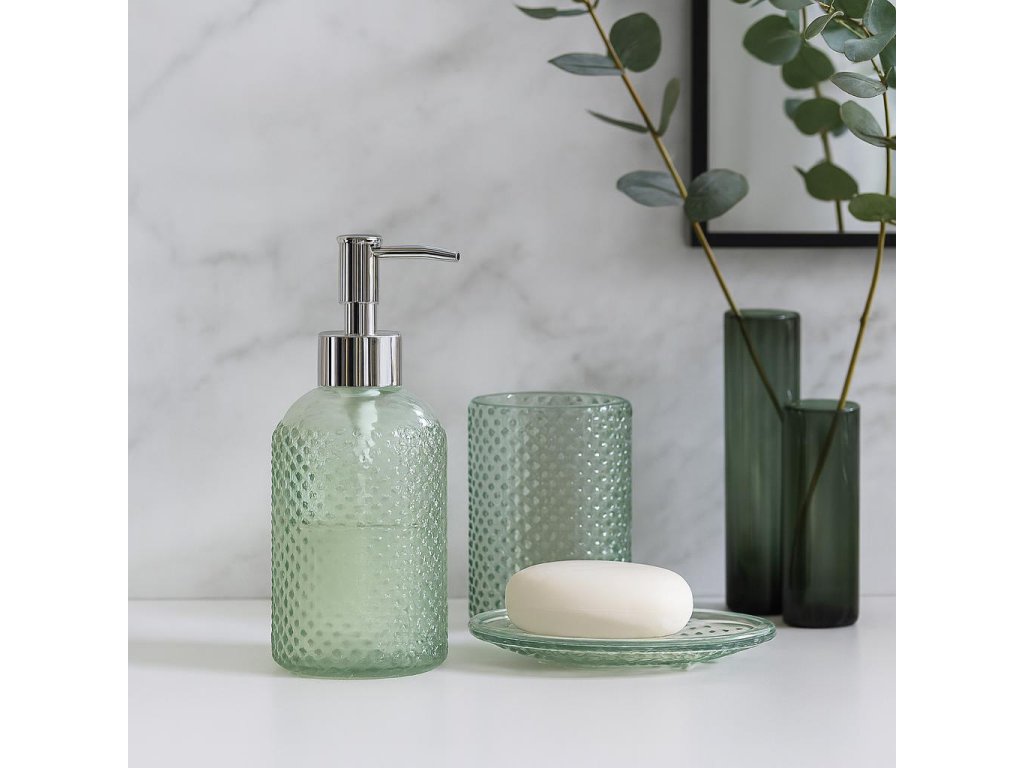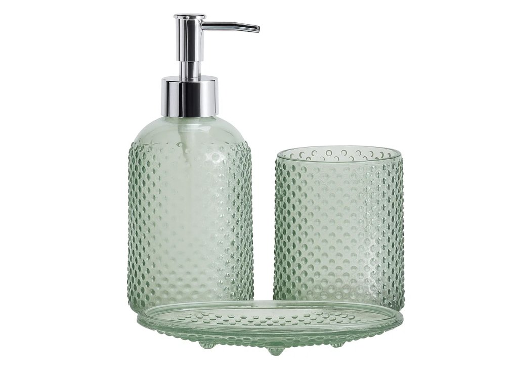 Koupelnová sada NODE, dávkovač, kelímek na kartáčky a mýdlenka, zelená