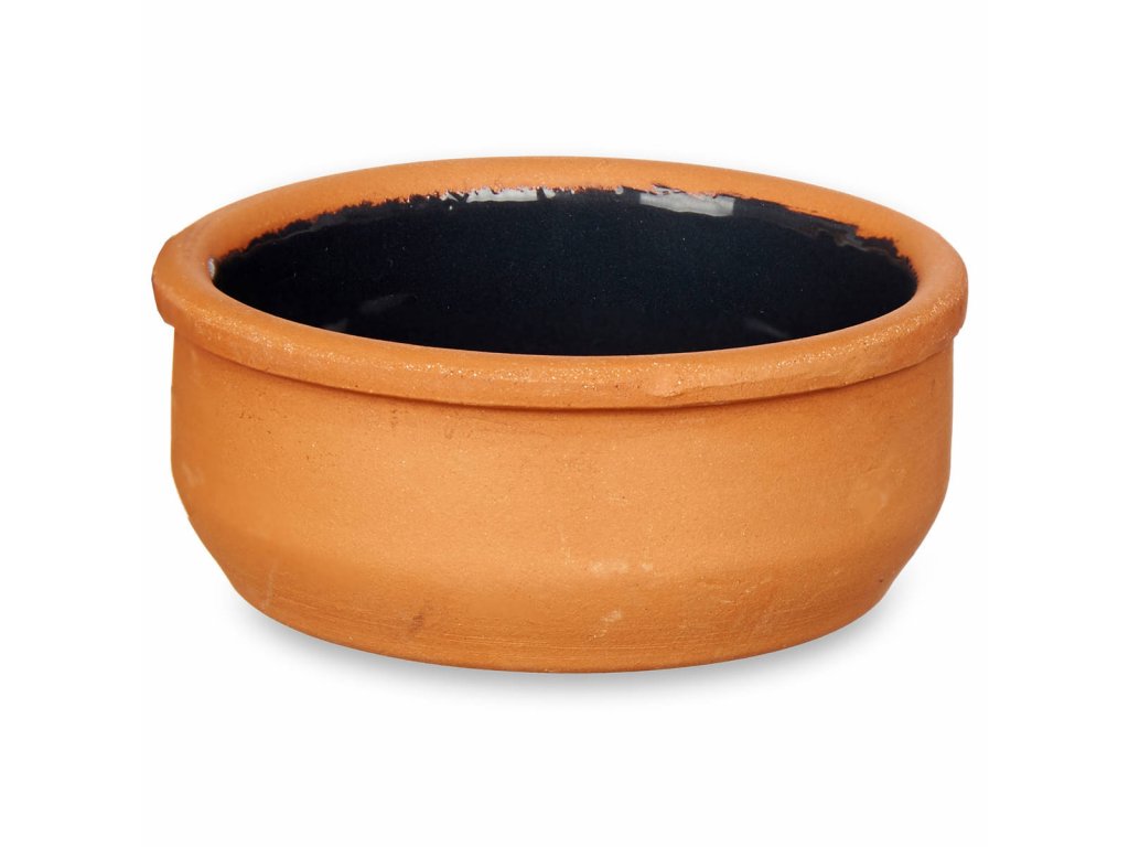 Hliněná nádoba, miska s glazovaným vnitřkem, černá