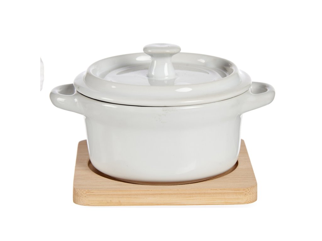 - Ceramická zapékací mísa na bambusovém podstavci: Tato praktická a funkční mísa je ideální pro přípravu lahodných zapečených pokrmů. Vyrobena z vysoce kvalitní keramiky, zajišťuje rovnoměrné a efektivní rozložení tepla, což se promítá do rovnoměrného pečení jídel.