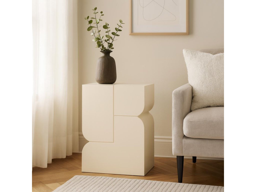 - Stylový design: Moderní tvar a béžová barva dělají z odkládacího stolku HUE dokonalý doplněk k různorodým interiérovým aranžmá. Jeho jedinečná forma přitahuje pozornost a dodává charakter každé místnosti.